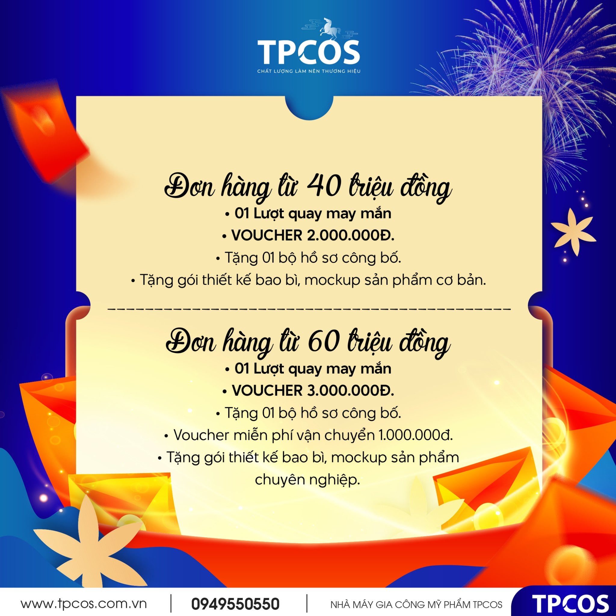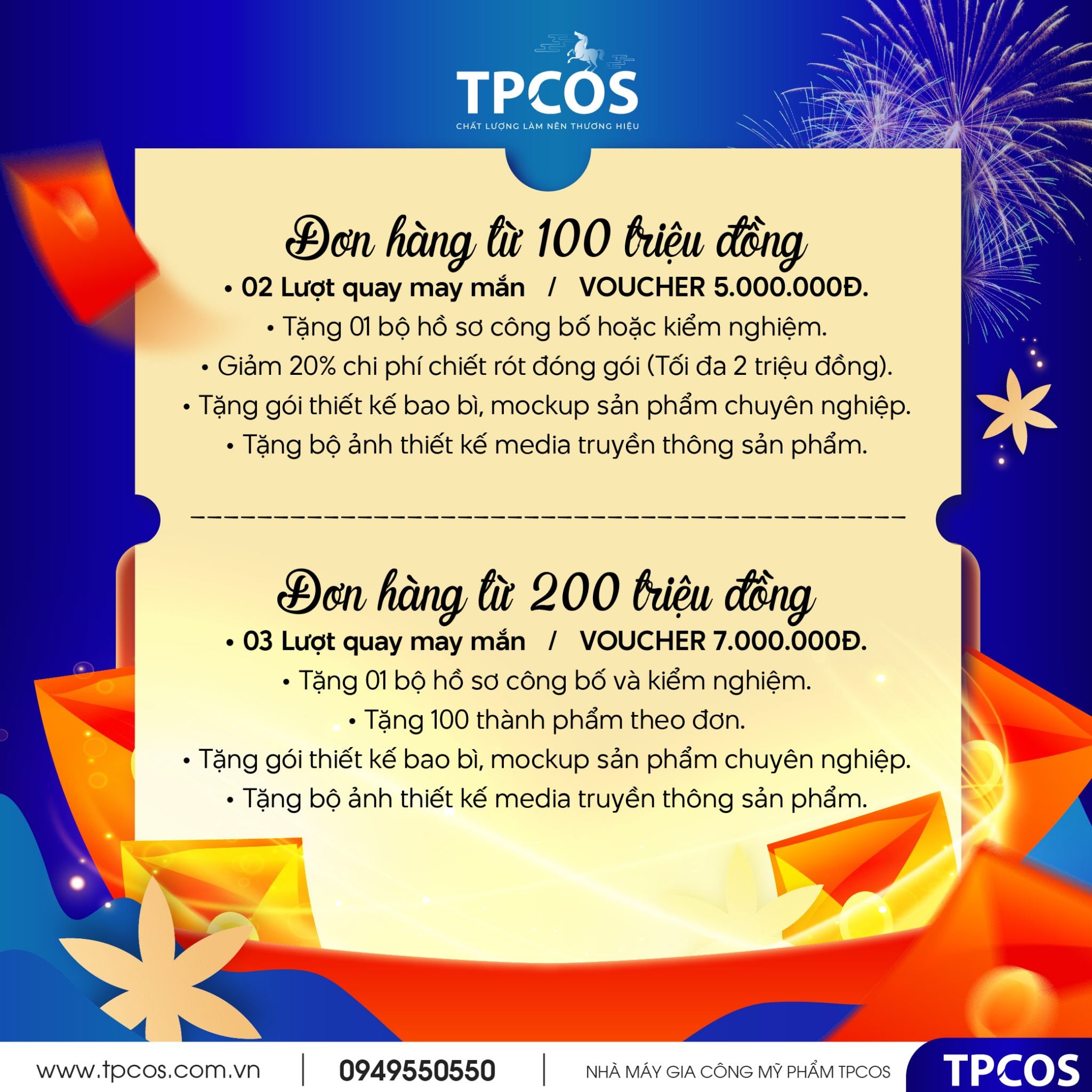 Không chỉ dừng lại ở những ưu đãi khủng, chương trình "Vinh Hoa Phú Quý – Bính Ngọ Như Ý" còn là lời chúc thịnh vượng mà TPCOS gửi đến Quý Đối tác. Khi lựa chọn gia công tại TPCOS, quý khách sẽ được trải nghiệm: